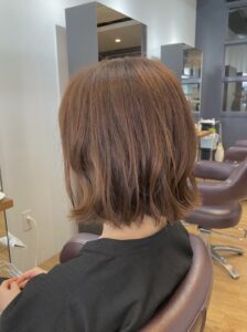 ショートボブから伸ばしかけの方に特に人気のある外ハネパーマスタイル。 スタイリングが楽なのはもちろん、重たく見えがちなボブスタイルも軽やかな印象に!